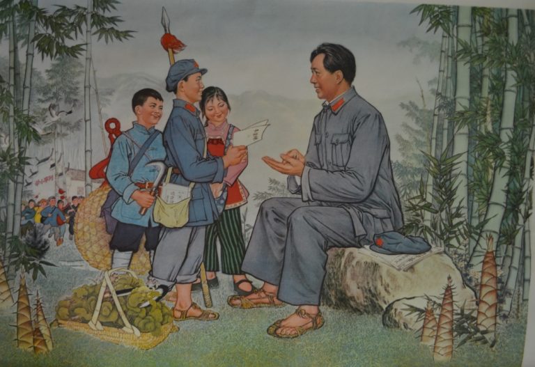 I spent a fabulous time in the PRC in 1979 as a consultant for a film crew. We were shooting an in-depth three hours documentary on the railroad network and this was the year I acquired my collection of political posters. In retrospect, I find the most interesting artifact is the one showing Chairman Mao Zedong saying in a paternalistic way to his protégé Hua Guofeng: “With you in charge, I’m at ease.” Other drawings eulogize the Canadian doctor Norman Bethune and the Communist Party.